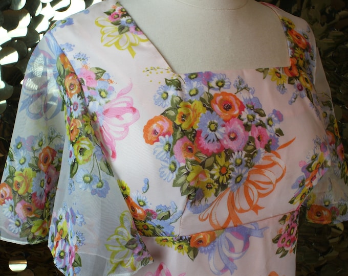 NEW ILGWU Vintage Coral + Green Pleated Maxi Dress