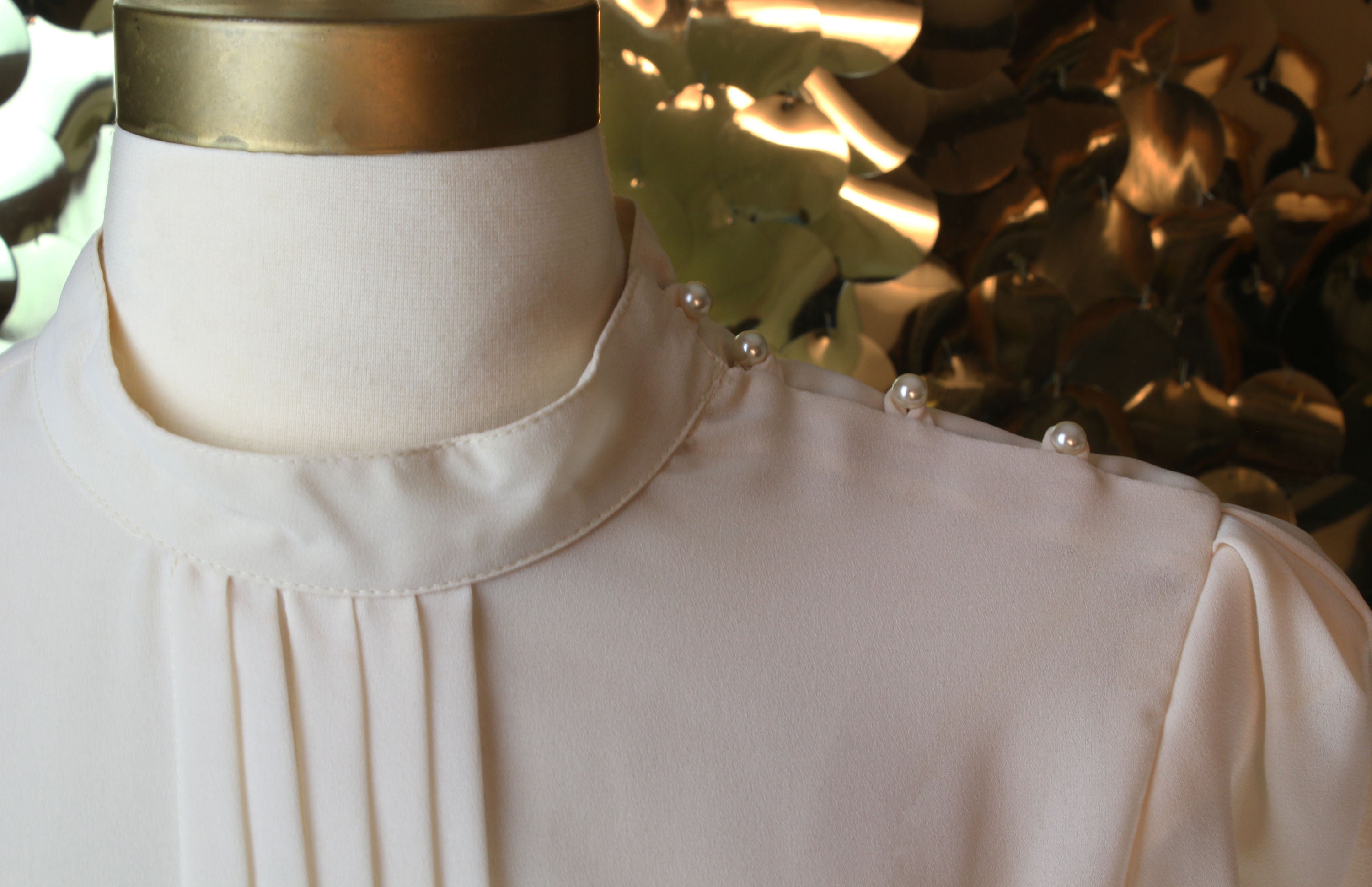 ✶Semi-sheer cream silk crepe chiffon with lined skirt.