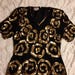 ✶Large gold sequinned rose design with black beadwork outlines, centerpiece, and leaf accents